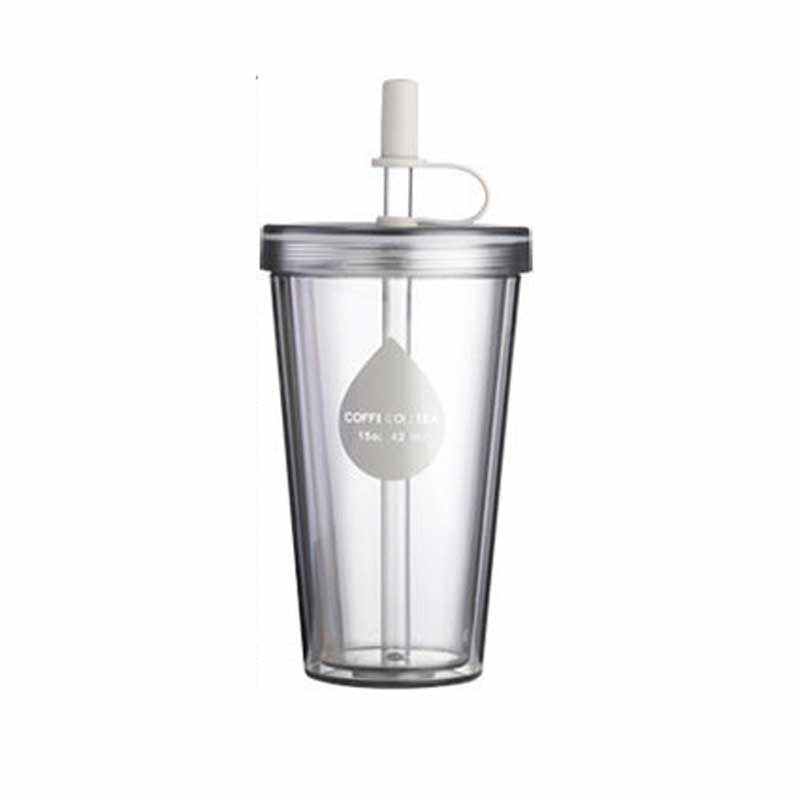 双层塑料吸管杯可循环使用大容量透明水杯奶茶杯子随行咖啡杯水樽