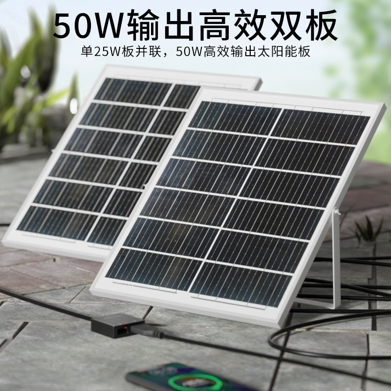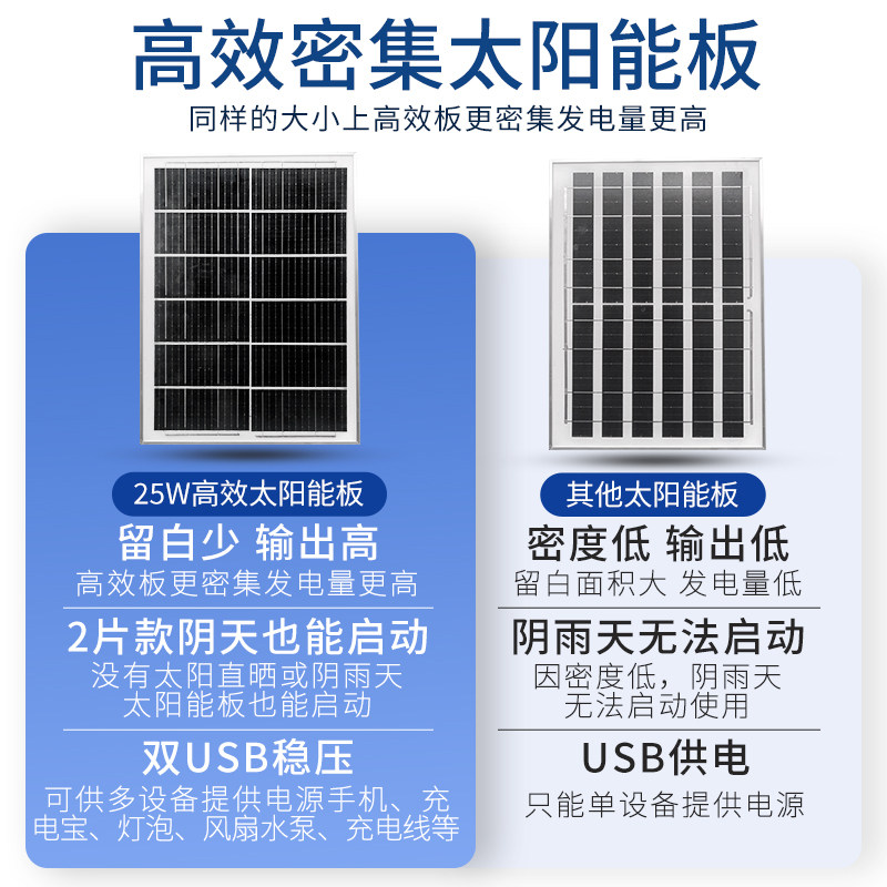 高效太阳能板USB手机充电宝光伏板25W发电防水快充户外鱼缸增氧