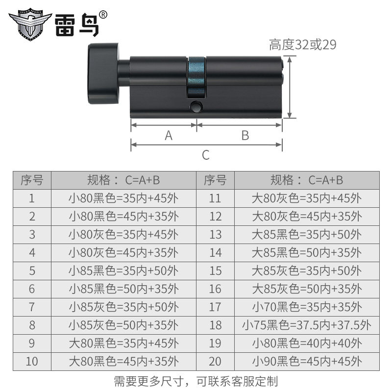 推荐理由:雷鸟 偏心锁芯家用通用型小70大80特殊锁心室内卧室房间木门内芯