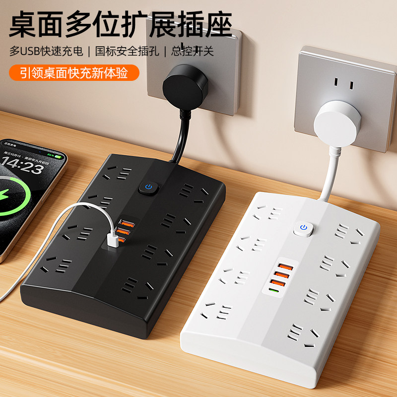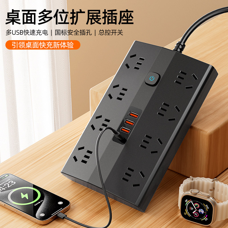 家用插排带线多插孔位电源延长线拖插板带USB充电转换器插座扩展