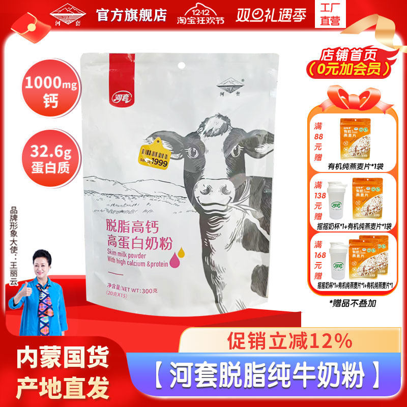 河套经典纯牛奶粉无蔗糖成人男女士学生内蒙古奶源全家营养冲饮