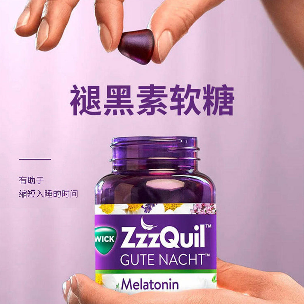 欧洲直邮德国WICK褪黑素软糖ZzzQuil倒时差睡眠睡前快速入睡60粒