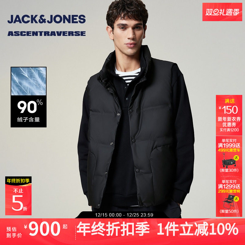 【AT系列】杰克琼斯男装羽绒马甲冬季新款立领纯色休闲保暖上衣