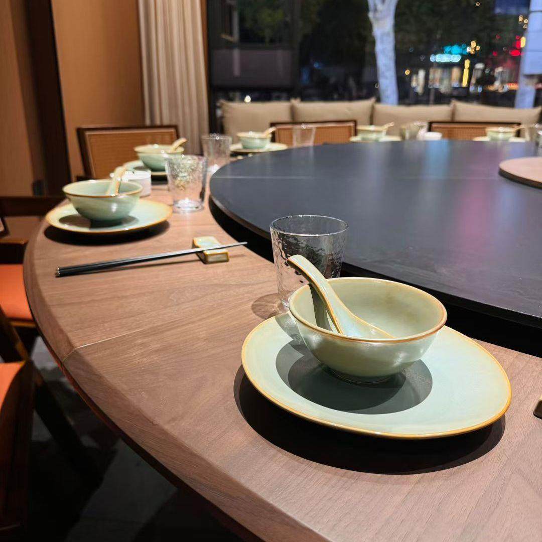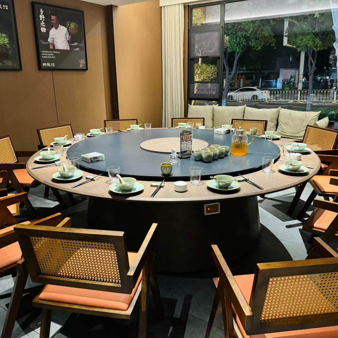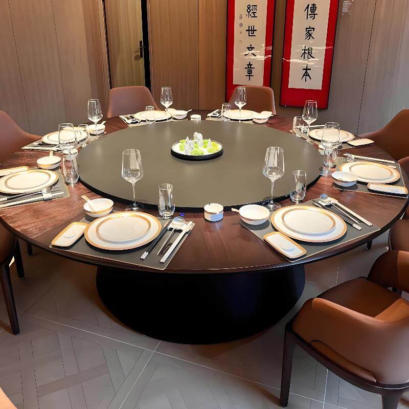酒店餐桌大圆桌电动岩板转盘包厢会所高档饭店火锅圆形餐桌椅20人