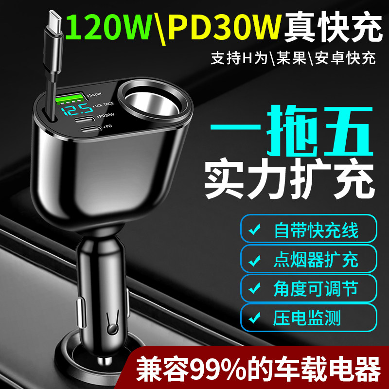 推荐理由:车载充电器车用记录仪一拖二五快充超级快闪充点烟器扩展口多功能
