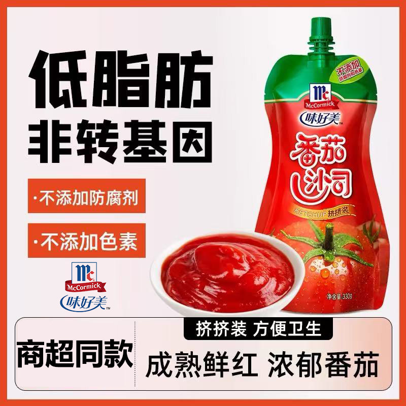 推荐理由:味好美低脂番茄酱家用手抓饼酱薯条番茄沙司挤压小包装不添加色素