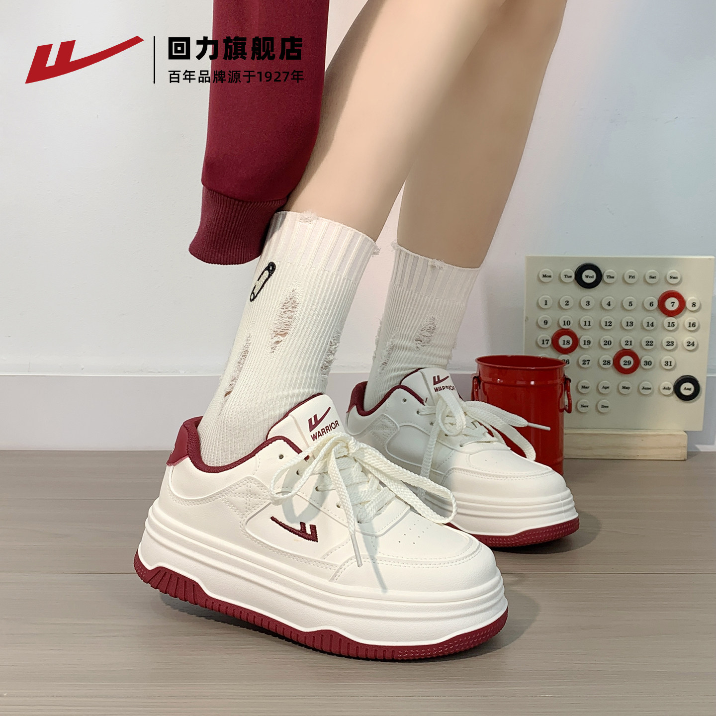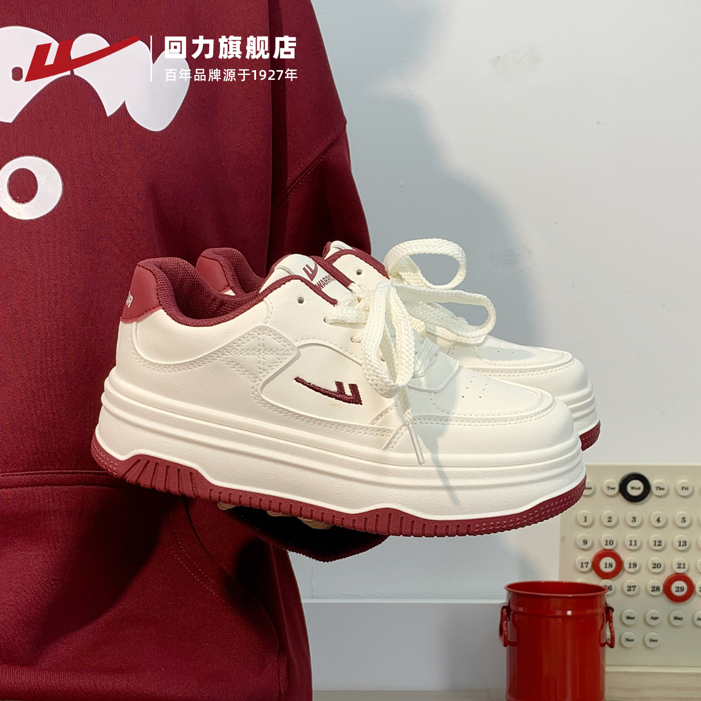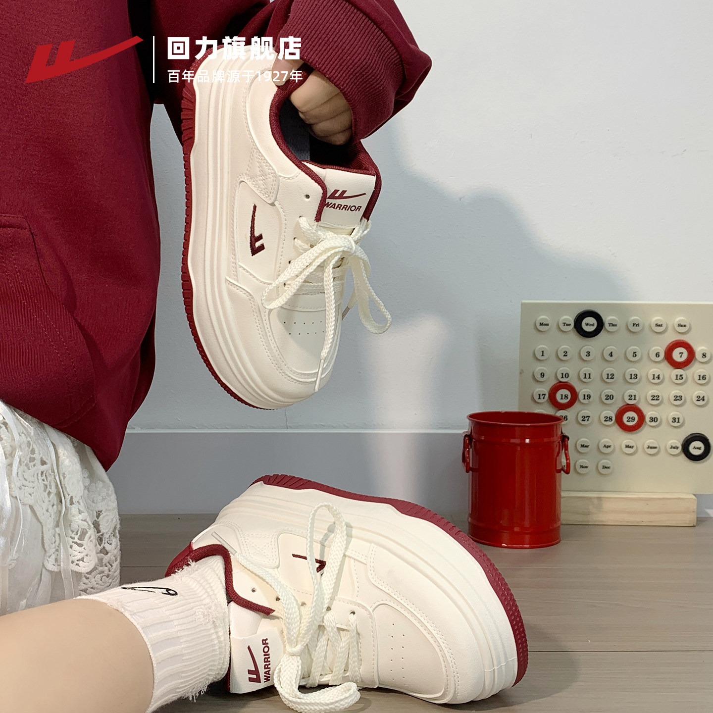 推荐理由:回力厚底板鞋2025秋冬新款加绒女鞋显高休闲鞋复古红拼色小白鞋女