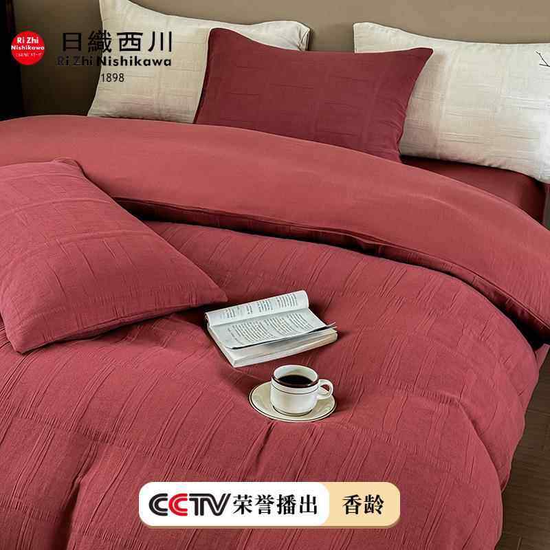 日织西川纯色2024新款A类母婴级三层纱提花纯棉全棉四件套简约风