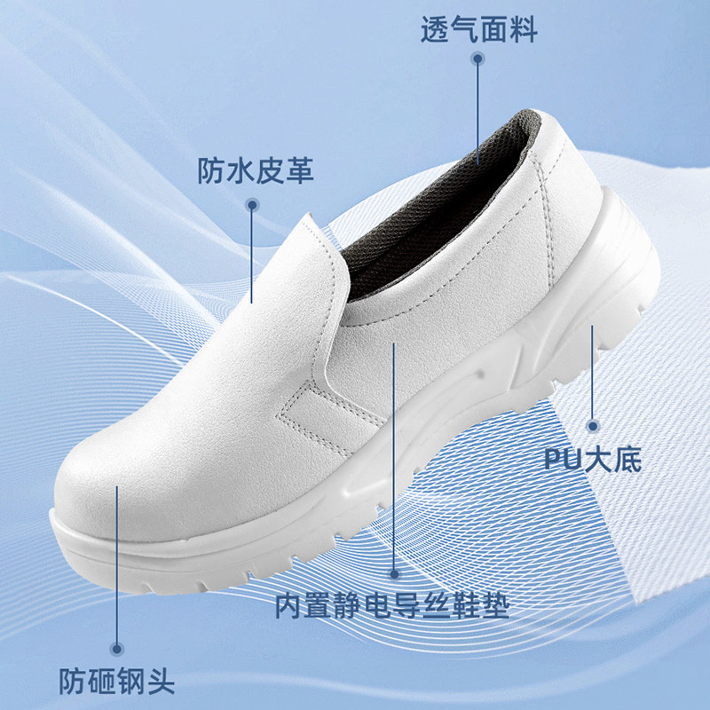 推荐理由:防静电安全鞋白色劳保鞋钢包头防护工鞋无尘室防砸工作鞋保护脚趾
