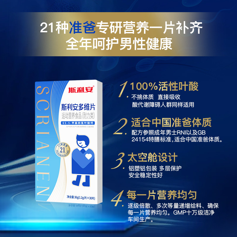 推荐理由:【重磅新品】斯利安男士备孕活性叶酸多维复合维生素男士专用30片