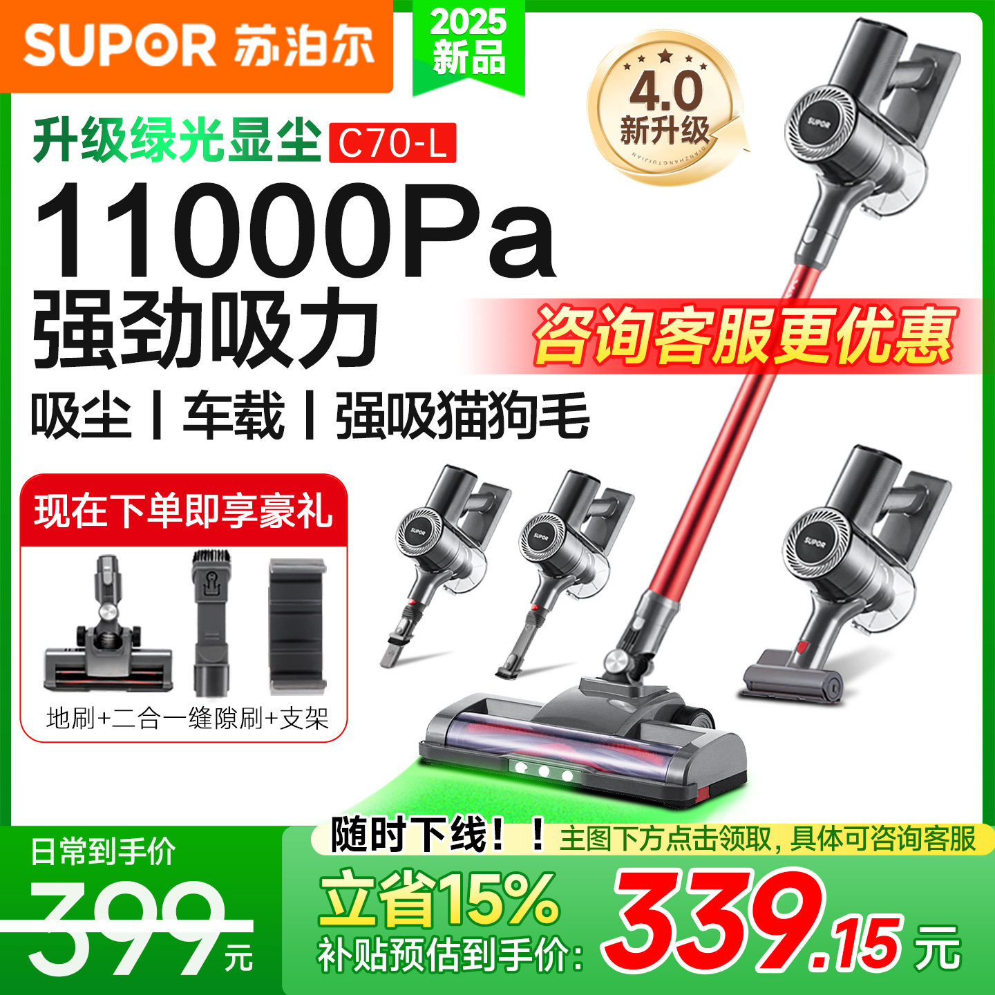 苏泊尔无线吸尘器家用大吸力绿光显尘手持清洁地毯猫毛宠物吸尘机