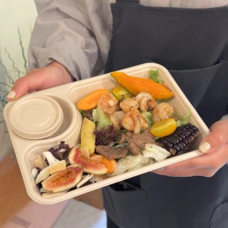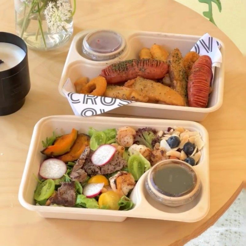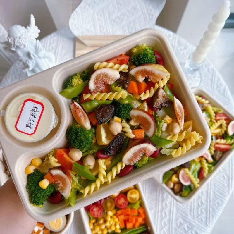 推荐理由:一次性餐盒酱汁一体盒轻食沙拉打包盒外卖便当盒寿司简餐纸浆饭盒