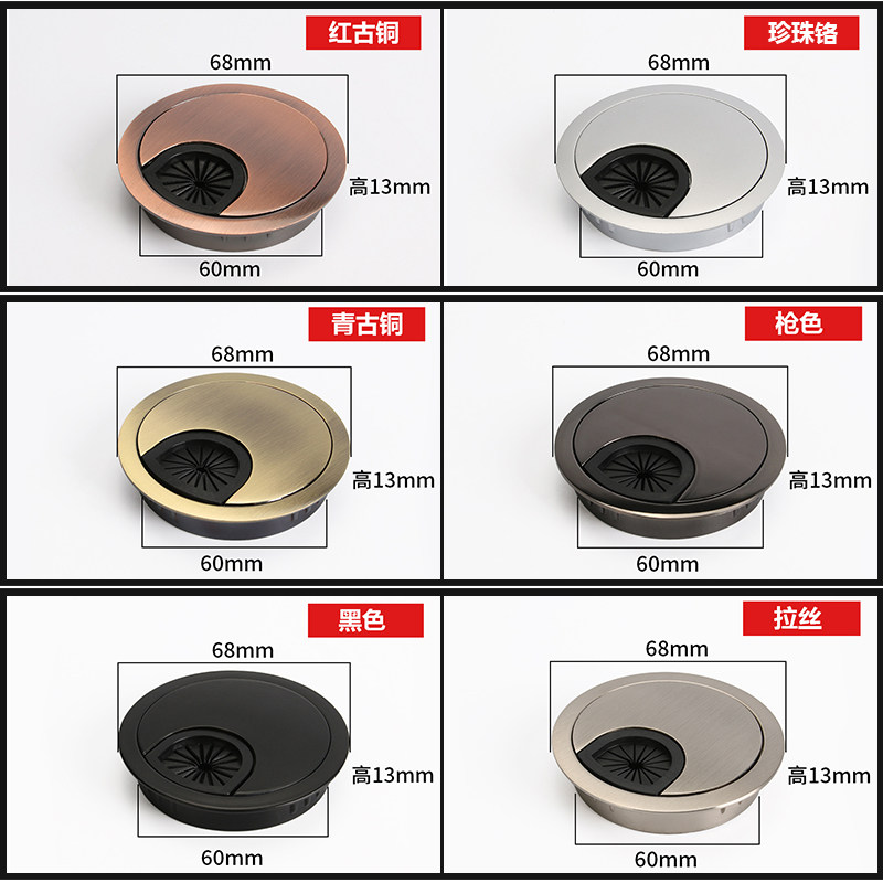 推荐理由:电脑办公桌穿线孔盖板桌面走线盒封口盖书桌装饰圈开孔锌合金孔盖