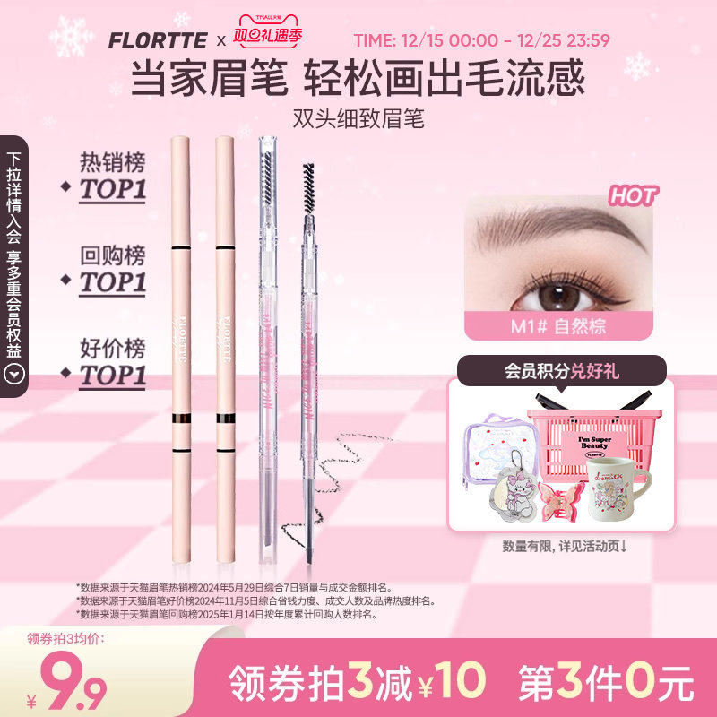 FLORTTE/花洛莉亚眉笔自然防水新手精细眉笔旗舰店官方正品学生党