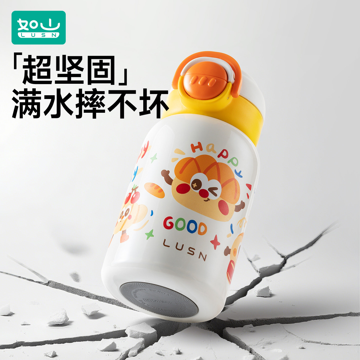 如山儿童保温杯宝宝吸管杯小月龄学饮杯婴幼儿316不锈钢双饮水杯