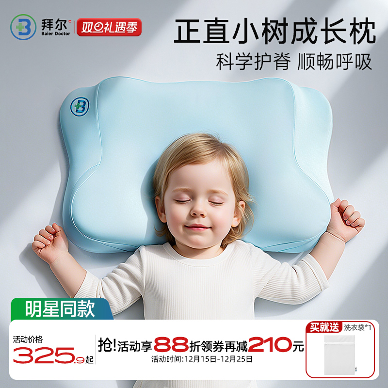拜尔儿童枕头1-3到6岁以上四季通用学生专用护脊可水洗宝宝枕头