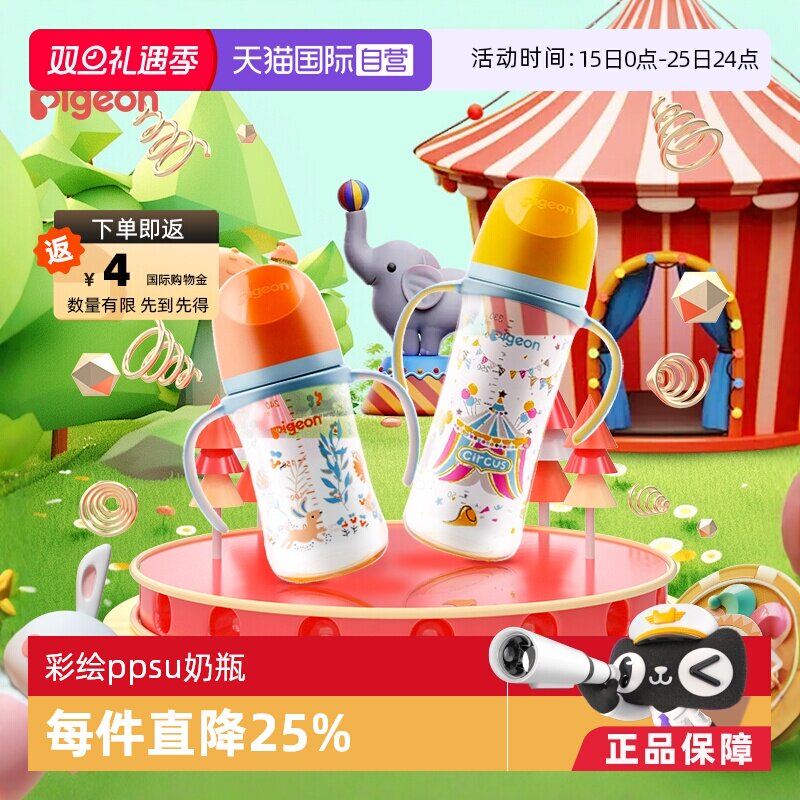 Pigeon贝亲宽口径彩绘把手奶瓶