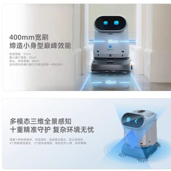 推荐理由:擎朗C40智能商用清洁机器人工厂商场酒店扫地洗扫吸推四合一清洁