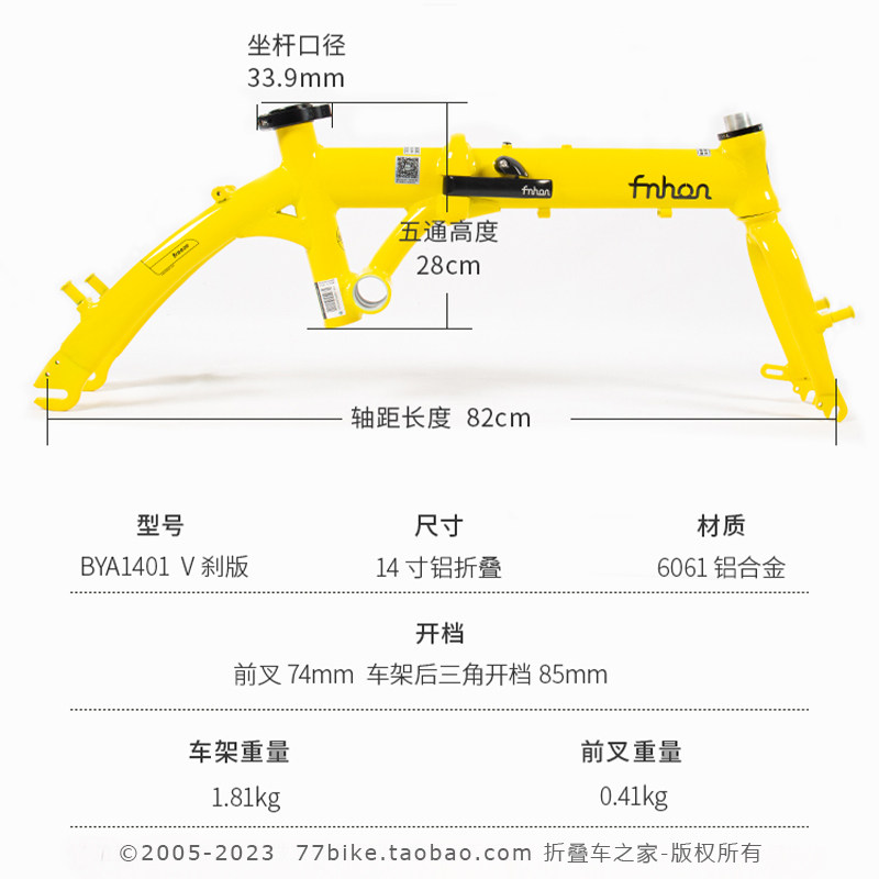 推荐理由:上海总代理fnhon风行412铝合金14寸BYA1401折叠自行车架+前叉头管