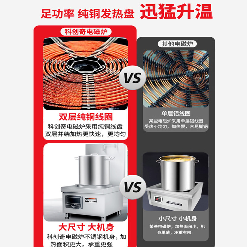 科创奇大功率商用矮汤炉8000w猛火电磁炉带背板低汤灶节能饭店