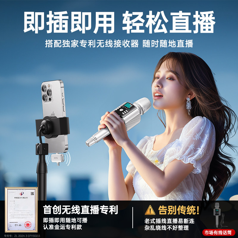 H9话筒音响一体麦克风K歌无线音箱声卡唱歌户外家用家庭ktv卡拉ok