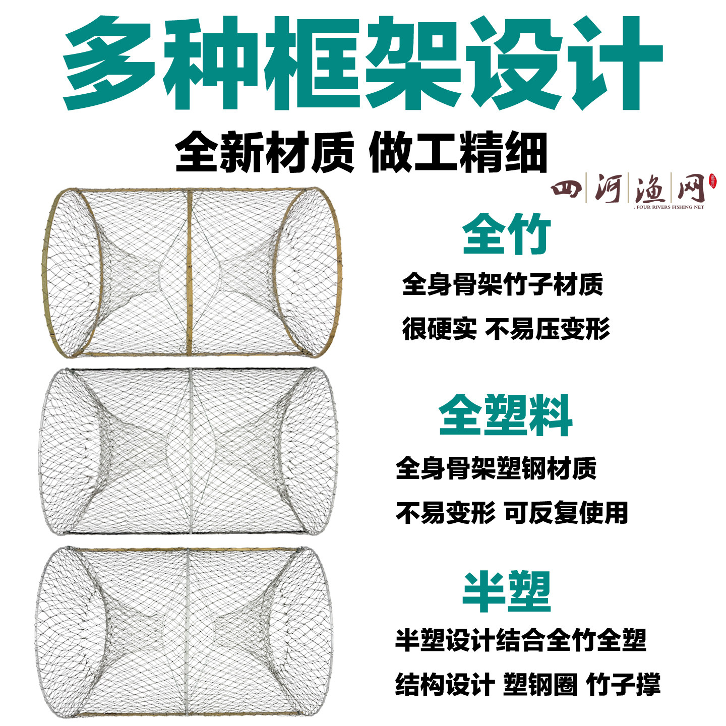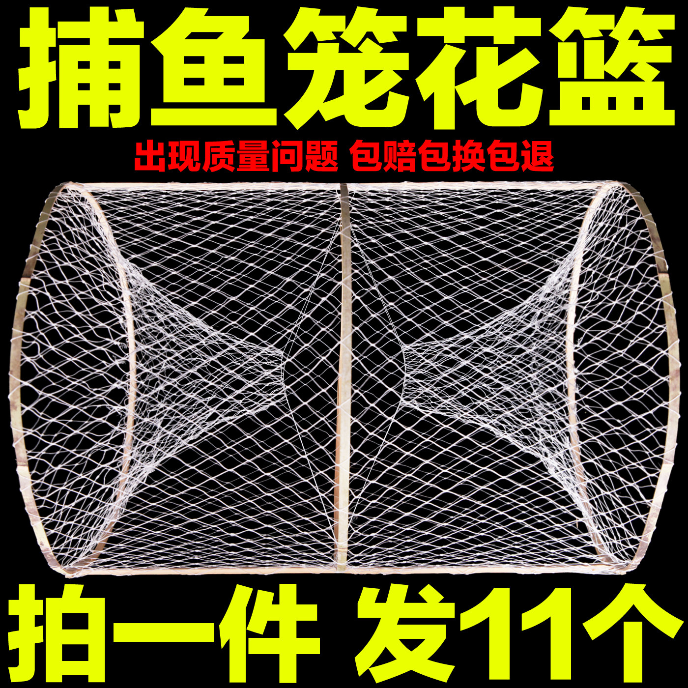 捕鱼花篮自动折叠圆形竹笼两头通鱼篮黑鱼笼鲫鱼笼甲鱼笼鳖笼渔网