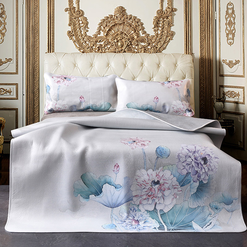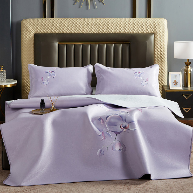 头层牛皮彩绘凉席三件套1.8席子双人床1.5折叠空调软席真皮