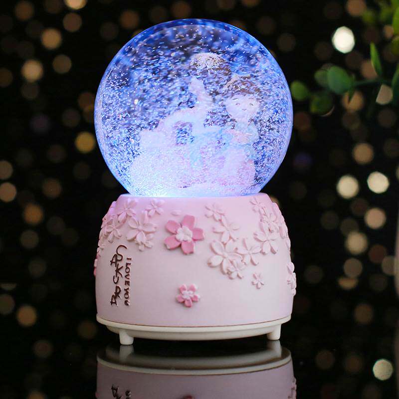 浪漫情侣水晶球摆件音乐盒房间装饰雪花八音盒送新人结婚礼物创意