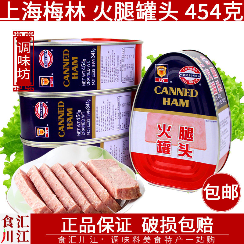 上海梅林火腿罐头454g包邮炒菜汤火锅即食大块猪肉罐头速食无淀粉