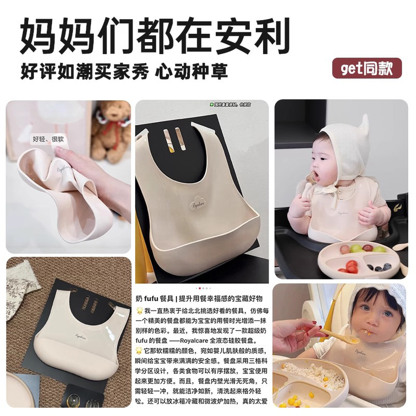 推荐理由:优代围兜婴儿辅食吃饭饭兜小宝宝防水食饭兜婴儿围嘴硅胶围兜轻薄