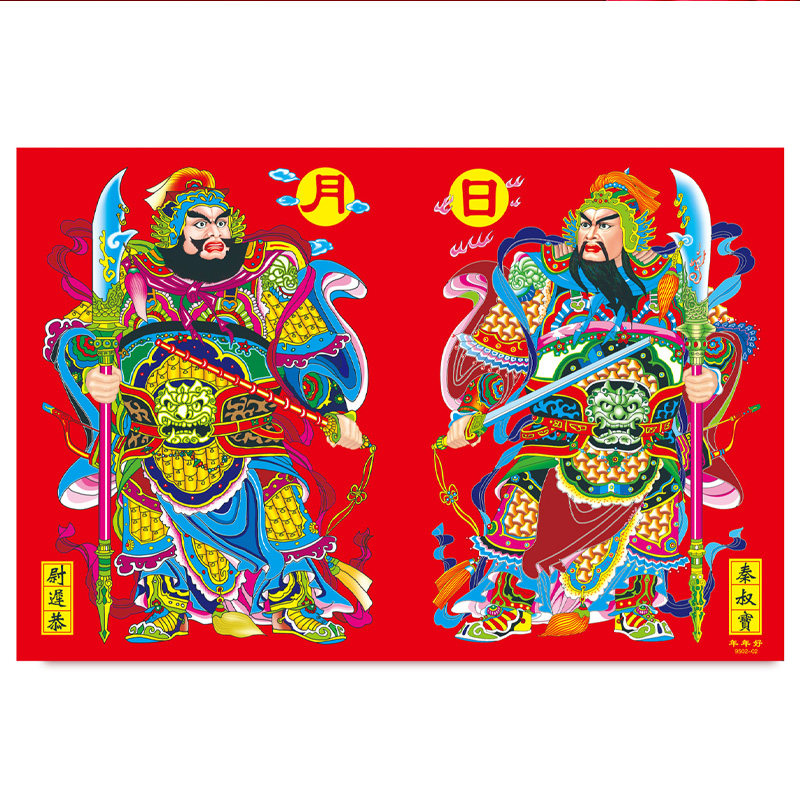 门神贴大门双门2026新年防水带胶单门画防盗门传统年画秦叔宝门贴