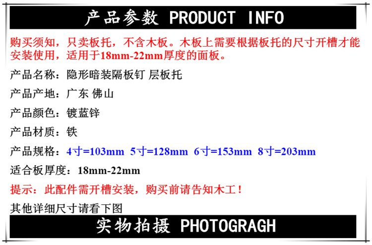 推荐理由:暗装层板托/18板-25板暗藏隔板托/隐形层板拖/层板钉/隔板钉 五金