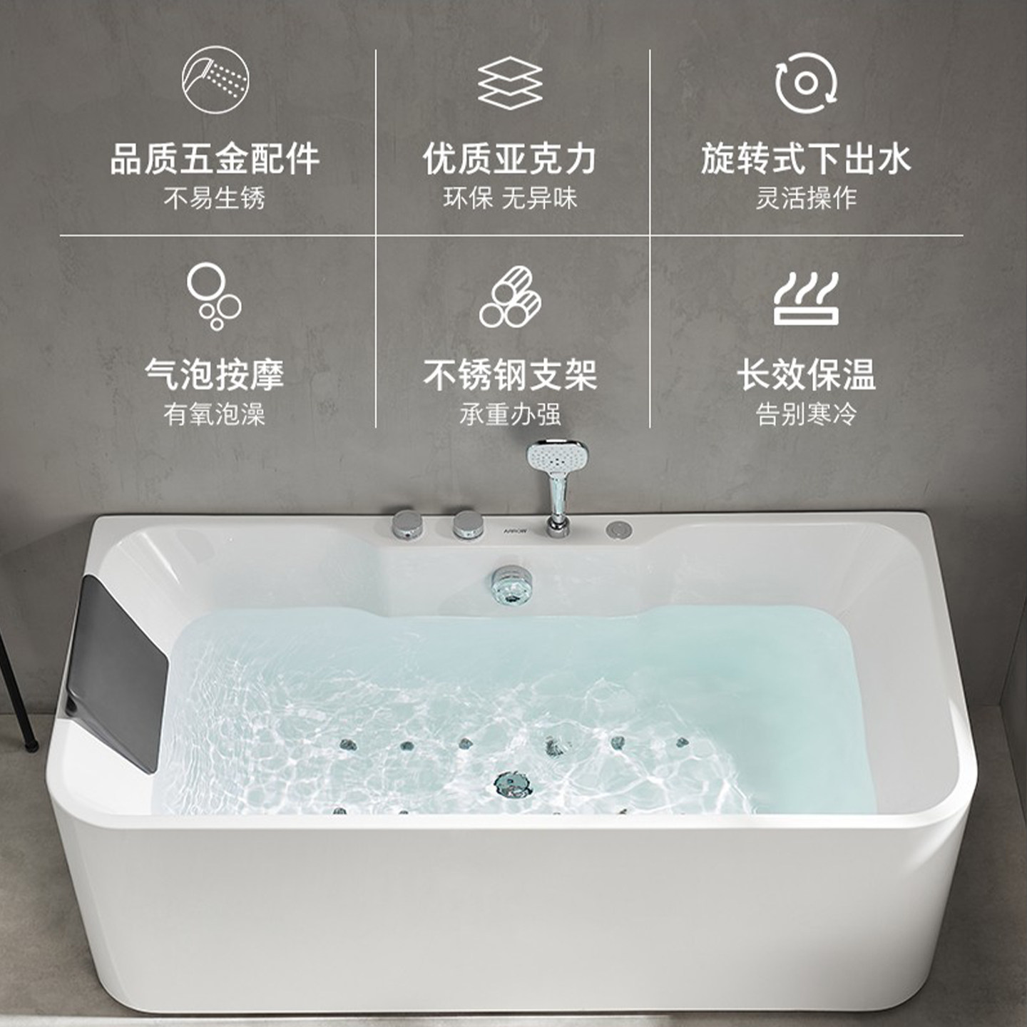 推荐理由:【政府补贴15%】箭牌浴缸按摩 成人家用亚克力一体无缝泡澡大浴盆
