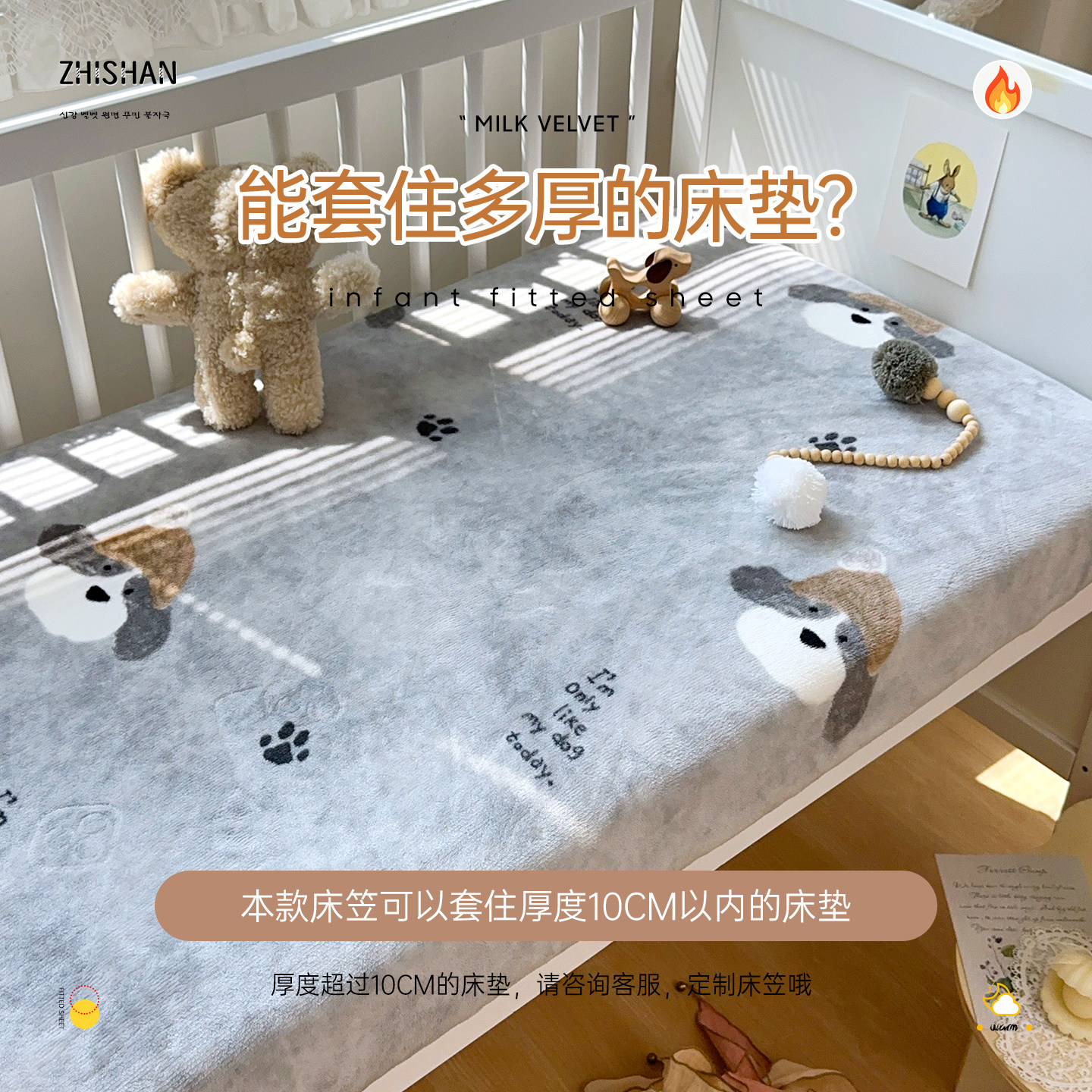 婴儿床床笠秋冬牛奶绒拼接床单儿童新生宝宝珊瑚绒幼儿园床垫套罩