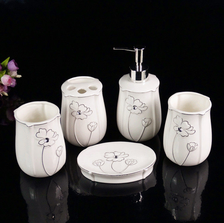 推荐理由:欧式骨瓷卫浴五件套装陶瓷浴室用品洗漱套件牙刷杯具套件新婚礼品