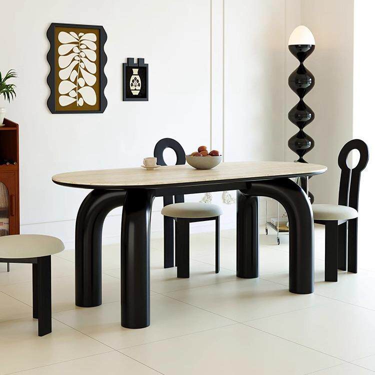 法式奶油风洞石岩板餐桌设计师款小户型长方形家用中古风大象餐台