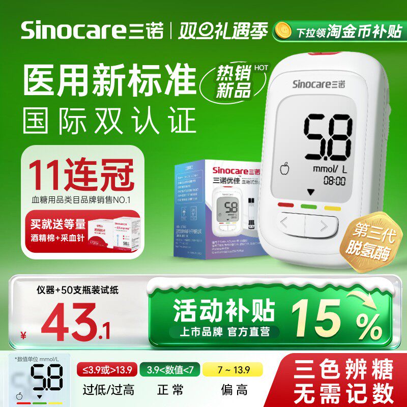 三诺优佳血糖仪测试仪家用测血糖仪器高精准低痛试纸官方旗舰店