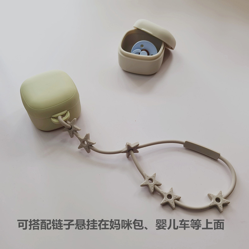 婴儿安抚奶嘴收纳盒可消毒硅胶bibs奶嘴盒宝宝牙胶防掉链防尘盒子
