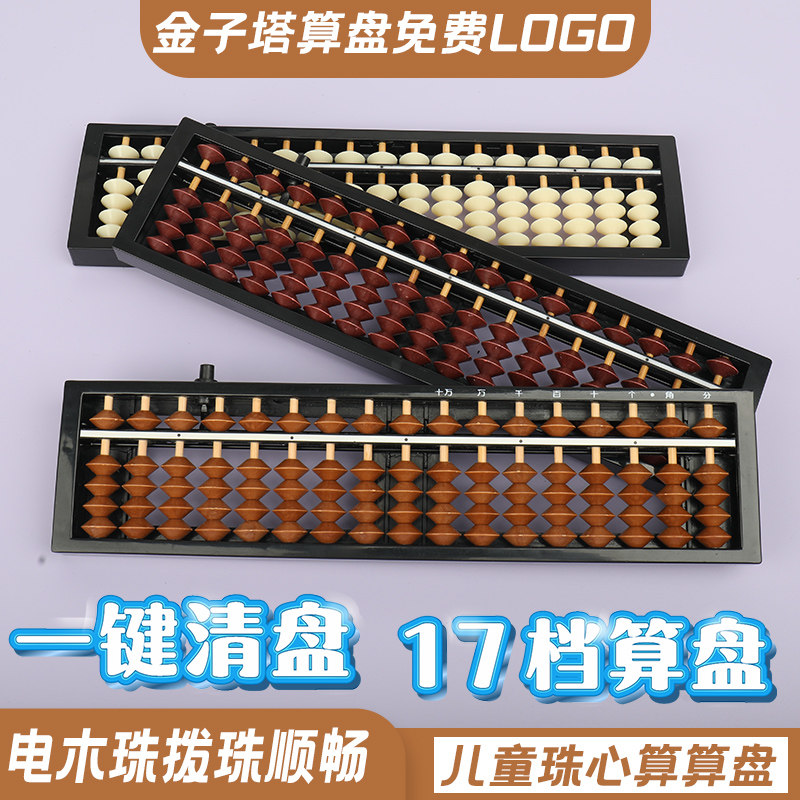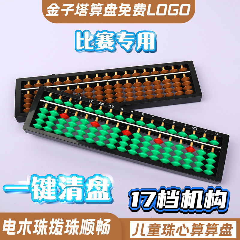 小学生算盘17档儿童算盘小学生专用二年级清盘器培训机构专业珠心算专用算盘23档金字塔135型比赛用珠算算盘