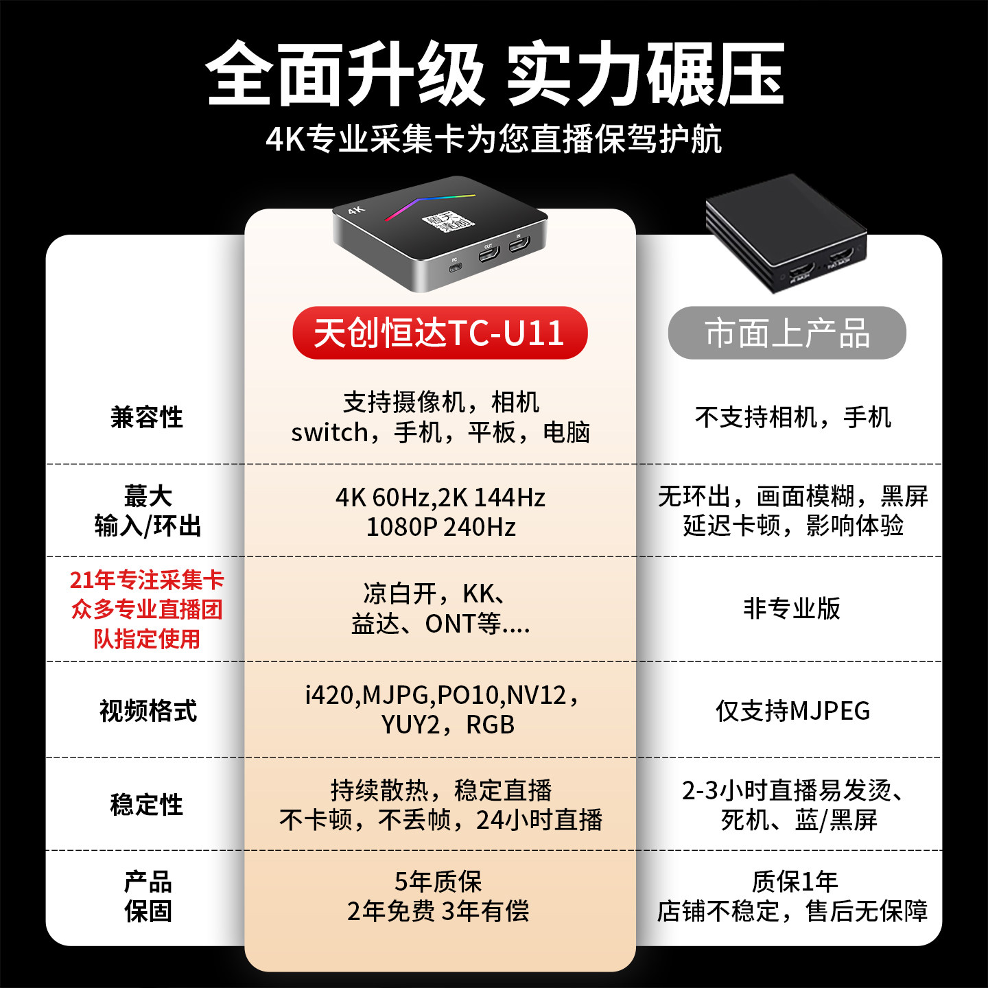 天创恒达TC U11采集卡直播专用4K视频采集器相机手机平板PS5设备