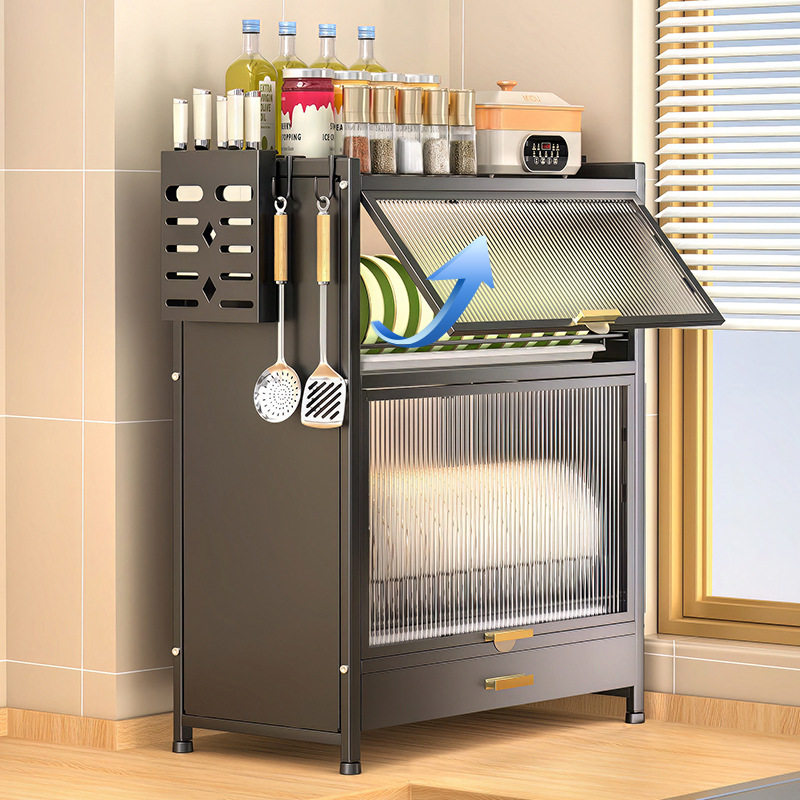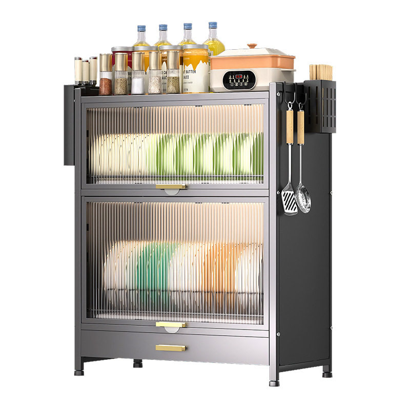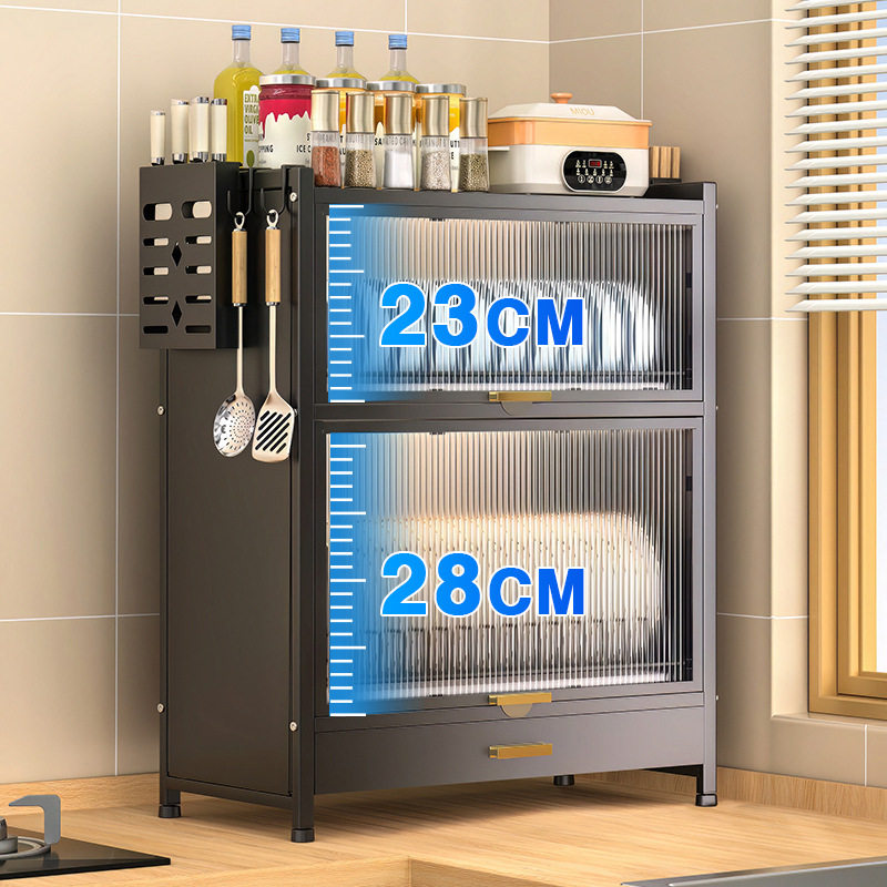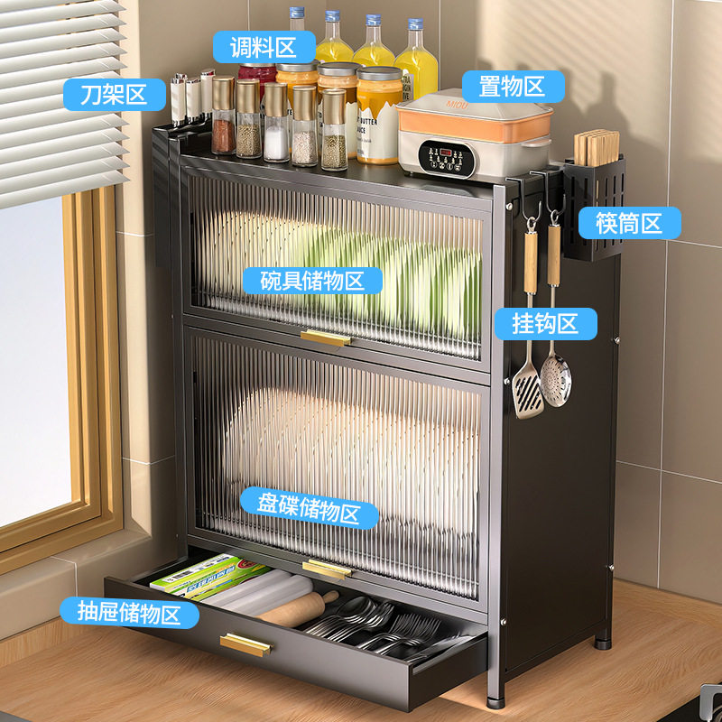 厨房置物架台面多层收纳架多功能家用碗架沥碗碟储物架子带门橱柜