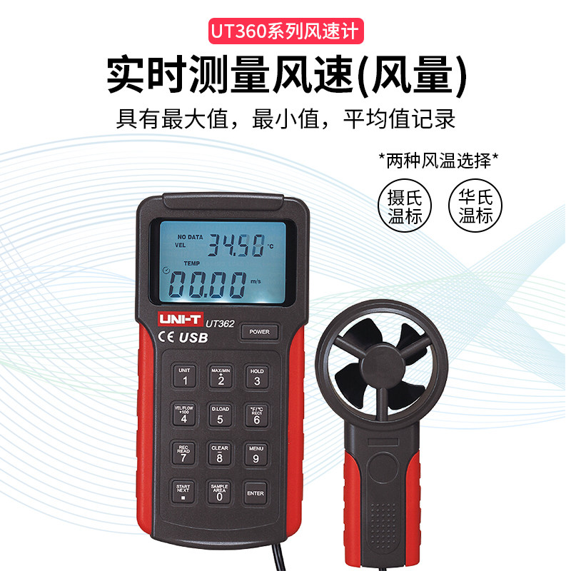 推荐理由:优利德风速仪高精度迷你数字风速计手持式风力风速测量仪UT363 BT