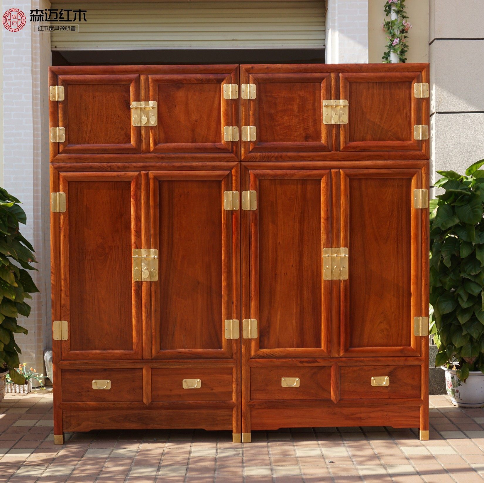 缅甸花梨红木顶箱柜加厚独板衣柜原木实木收纳柜大果紫檀全榫卯
