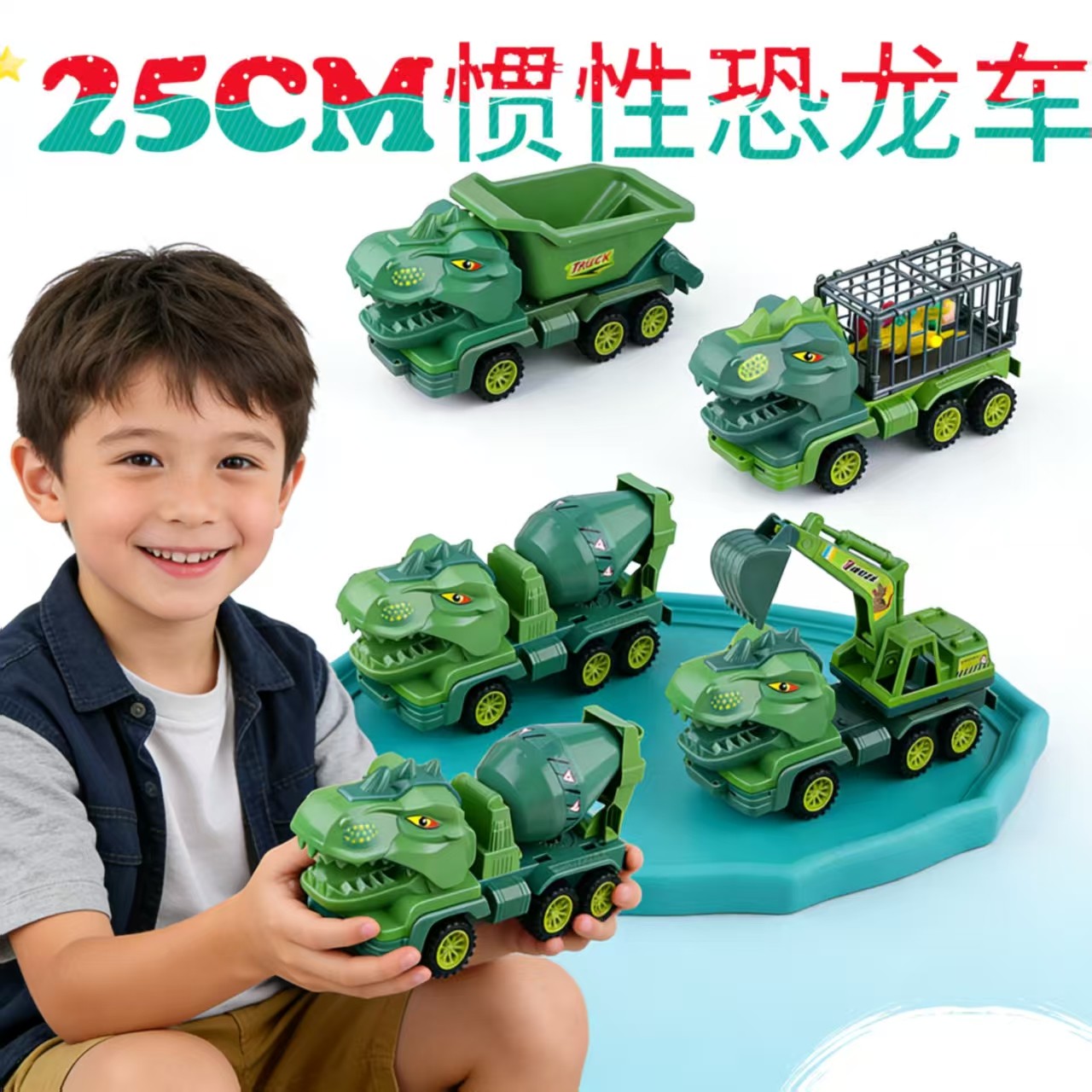 恐龙玩具惯性玩具车男孩侏罗纪野生霸王龙挖掘机搅拌车装卸翻斗车