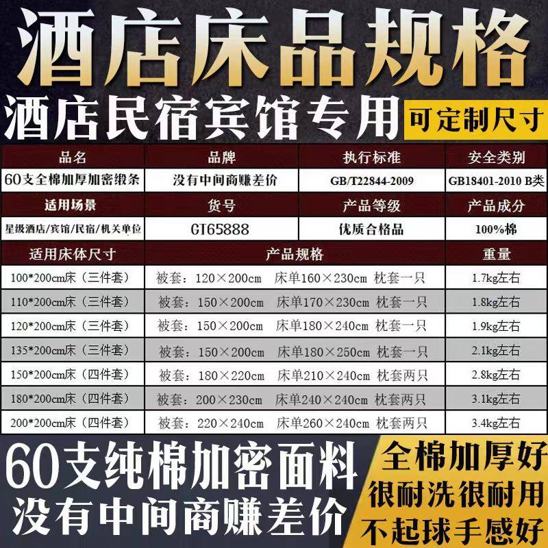 推荐理由:酒店民宿四件套床品被套全棉被单纯白色被罩宾馆床上用品专用天津