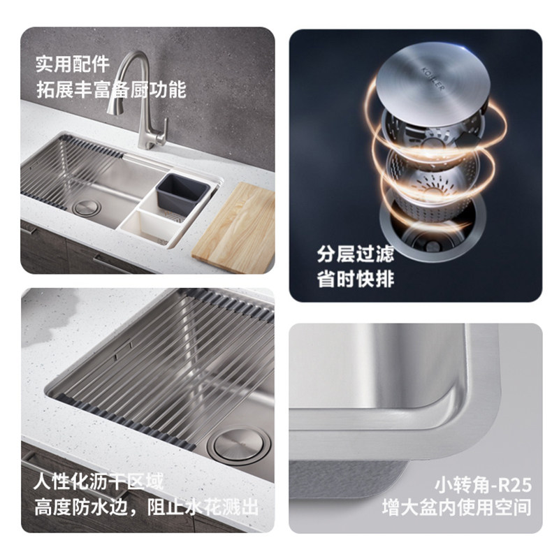 推荐理由:科勒厨房水槽大单槽304不锈钢洗菜盆洗碗池洗碗池大单槽34451T