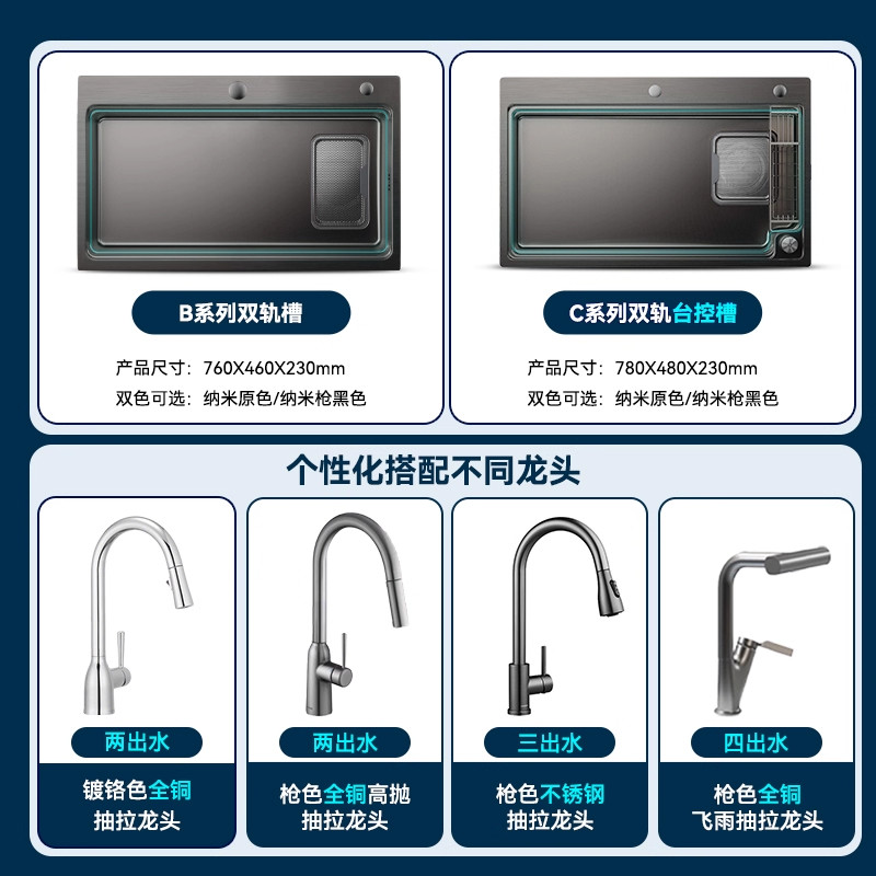 摩恩官方厨房水槽套餐大单槽集渣槽不锈钢洗菜盆家用洗碗槽洗碗池