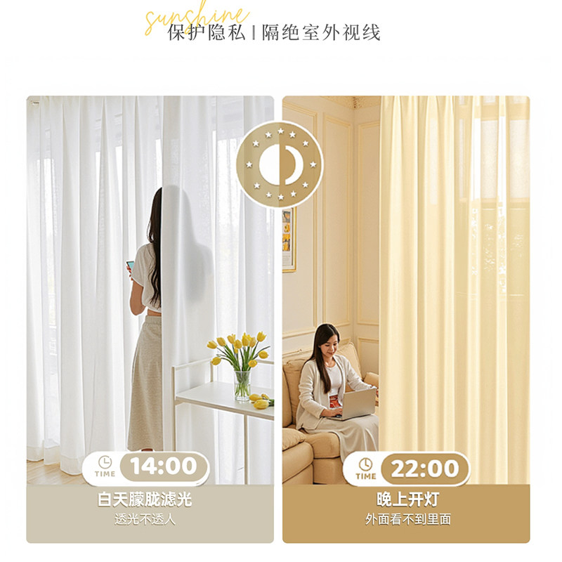 幻影纱窗帘纱帘透光不透人新款客厅阳台飘窗窗纱简约梦幻白纱加厚