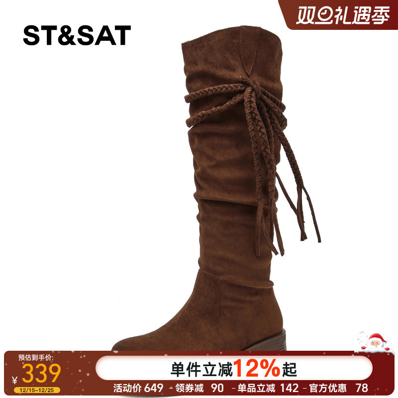 推荐理由:星期六复古废土风流苏骑士靴女2025美拉德不过膝长靴西部堆堆靴子