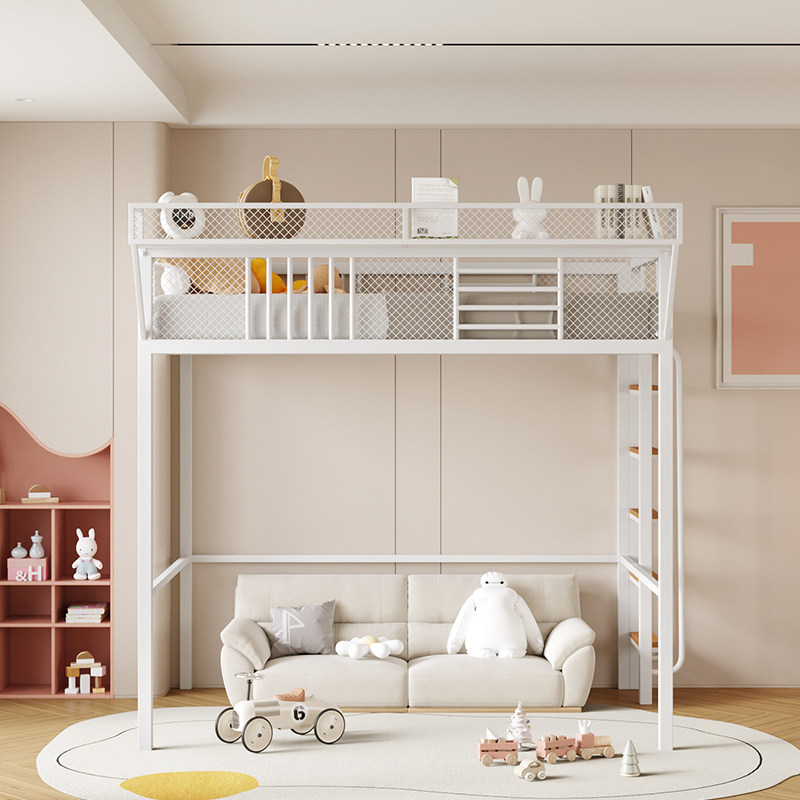 推荐理由:铁艺高架床单上层复式二楼床置物架上床下桌错层高低床步梯阁楼床